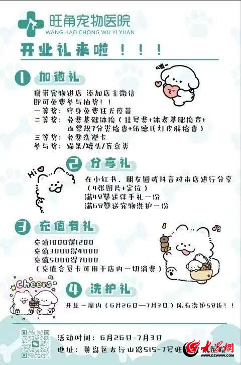 据悉,开业期间医院将推出首诊折扣、基因检测体验价等惠民活动,感兴趣的宠物主人可前往青岛西海岸新区太行山路515-7号咨询详情,让宠物感受专业与温暖兼具的贴心服务。
