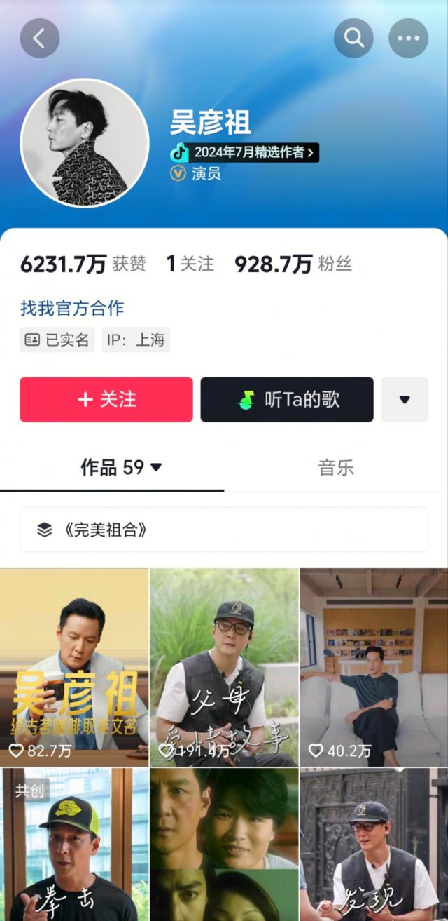 从去年 5 月 18 日在抖音发布第一条视频以来,吴彦祖的抖音粉丝已经达到 928.7 万。他打破了传统明星代言的单次曝光模式,形成"内容 + 品牌 + 消费"三维协同体系。